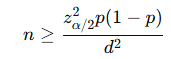 p(1-p)의 최대값은 1/4 → 가장 보수적 계산 가능