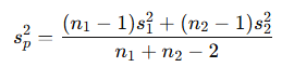 sp2 = ((n1-1)*s1**2 + (n2-1)*s2**2) / df