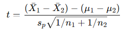 B. 모분산 모름(소표본) — t검정(등분산 가정)