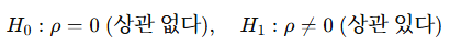 • 두 연속형 변수 간의 선형 관계의 정도를 나타내는 수치