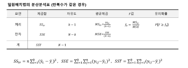 - 각 집단의 평균이 동일하다는 귀무가설